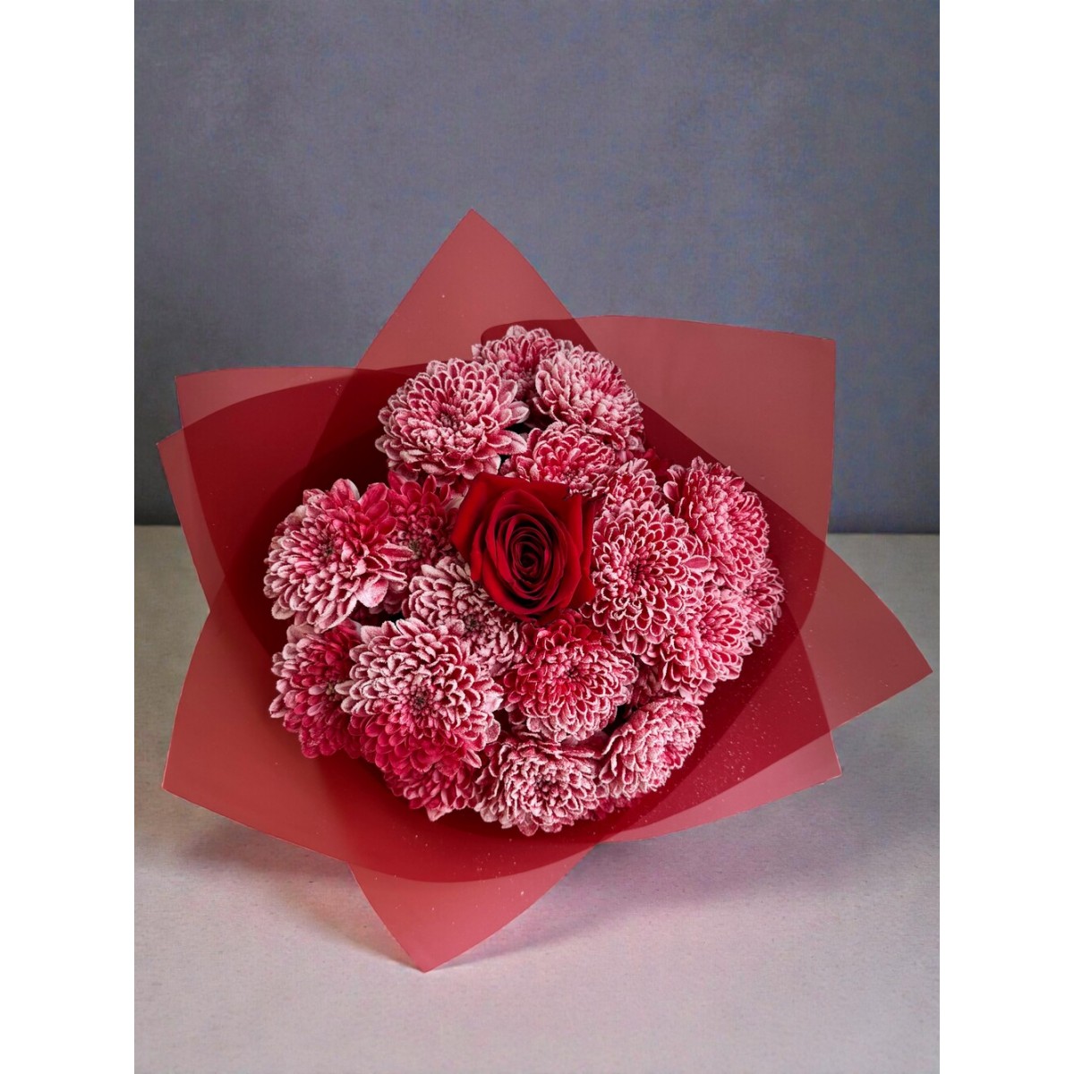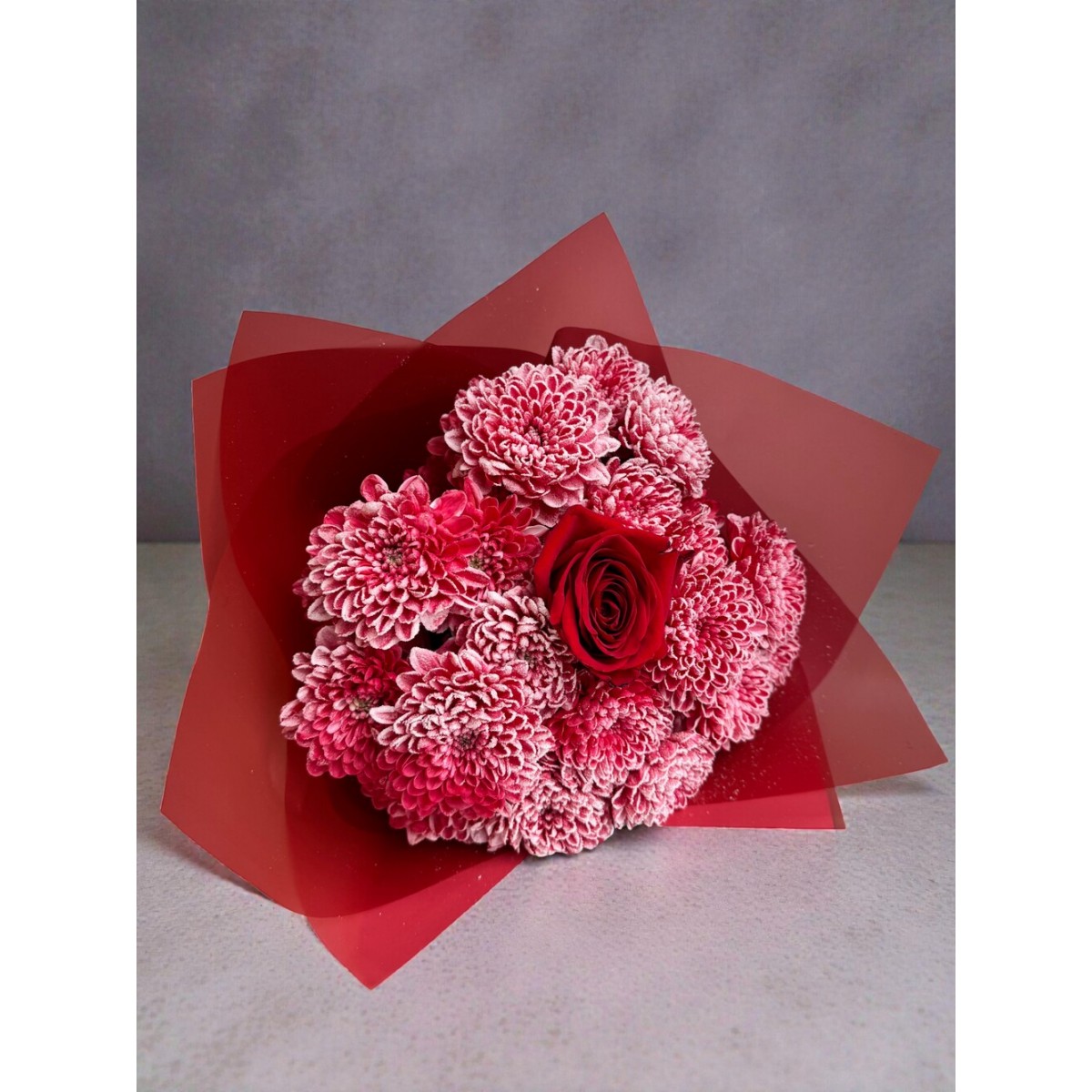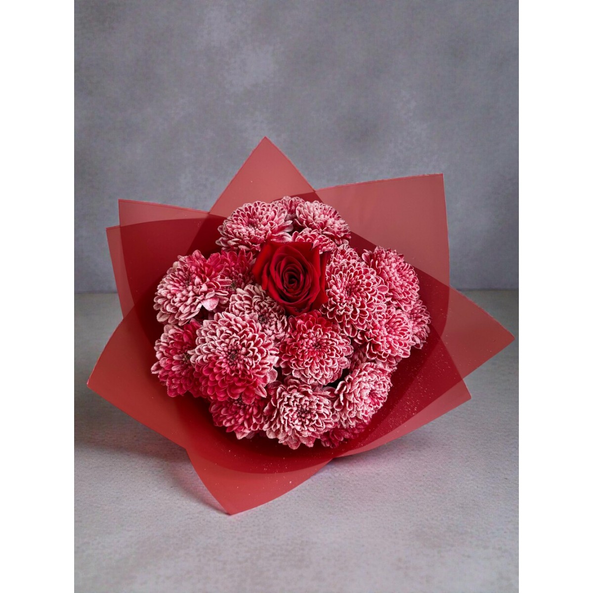 Derin kırmızı tonların yoğun dokusuyla hazırlanan Crimson Frost Rose & Chrysanthemum Premium Buketi, güçlü duyguları zarafetle ifade eden özel bir tasarımdır. Kadifemsi kırmızı gül, frost dokulu krizantemlerle çevrelenerek dikkat çekici ve sofistike bir kontrast oluşturur.