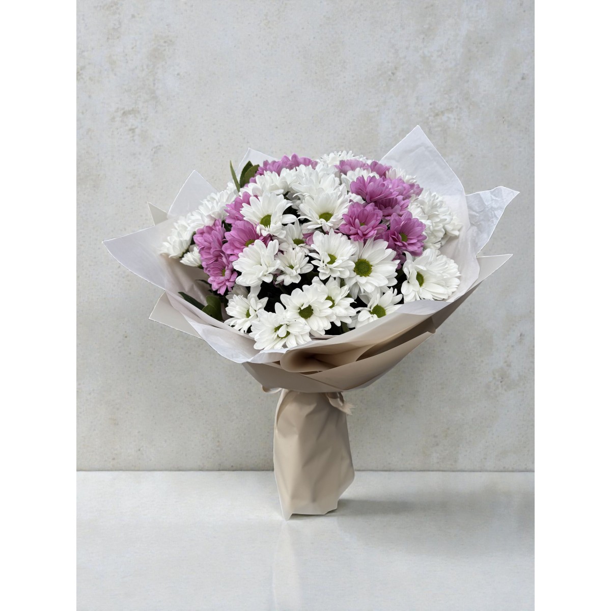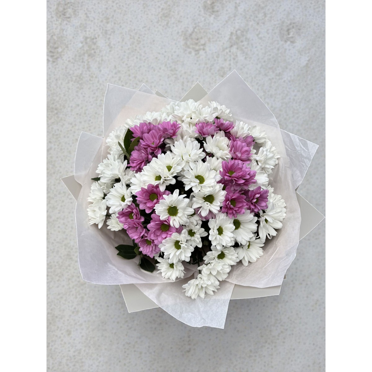 Lilac Daisy, beyaz ve lila tonlu papatyaların yumuşak geçişlerle birleştiği zarif bir premium bukettir. Çiçeklerimiz Ekvator, Kenya, Kolombiya ve Hollanda’dan gelen premium papatyalardan seçilerek siparişe özel hazırlanır.