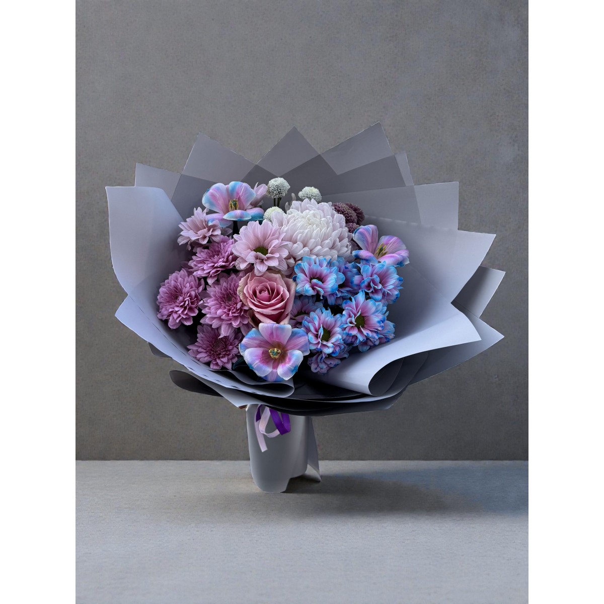 Luna Mist, lila ve mavi tonlarda ithal çiçeklerle hazırlanmış, soft renk geçişli bir premium bukettir. Çiçeklerimiz Ekvator, Kenya, Kolombiya ve Hollanda’dan gelen premium ürünlerden seçilir ve her tasarım siparişe özel hazırlanır.